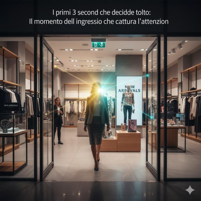 Nel mondo del retail, tre secondi possono cambiare il destino di un acquisto. Non è un’esagerazione: le ricerche di neuromarketing dimostrano che il cervello prende decisioni rapidissime, guidato da stimoli visivi, colori, luci ed emozioni. Per un negoziante, capire dove si posano gli occhi del cliente nei primi istanti è la chiave per progettare vetrine e spazi che attraggono, incuriosiscono e invitano ad entrare.