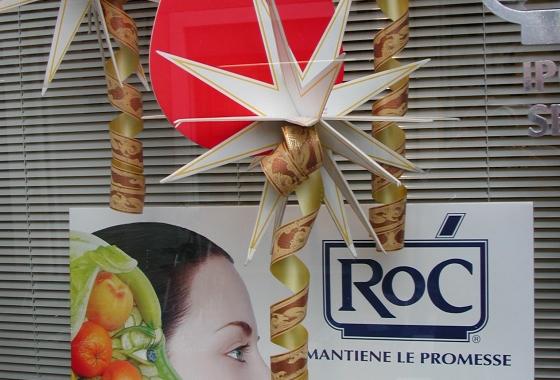 Tornando alle vetrine, una buona visibilità è aiutata dall'inserimento di elementi decorativi stagionali (fiori, rondini, arcobaleno in PRIMAVERA - sole, mare, pesci, conchiglie in ESTATE - rami, corteccia, castagne in AUTUNNO - stelle, angeli, pacchi regalo a NATALE). Nelle foto potete avere qualche suggerimento e qualche idea.